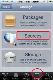 kalo udah terpenuhhi semua syaratnya, anda akan masuk kedalam cydia dan memilih "MANAGE" lalu pilih "SOURCES"